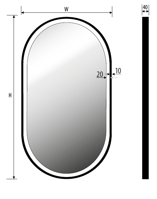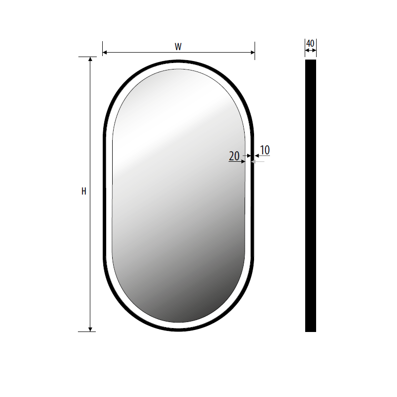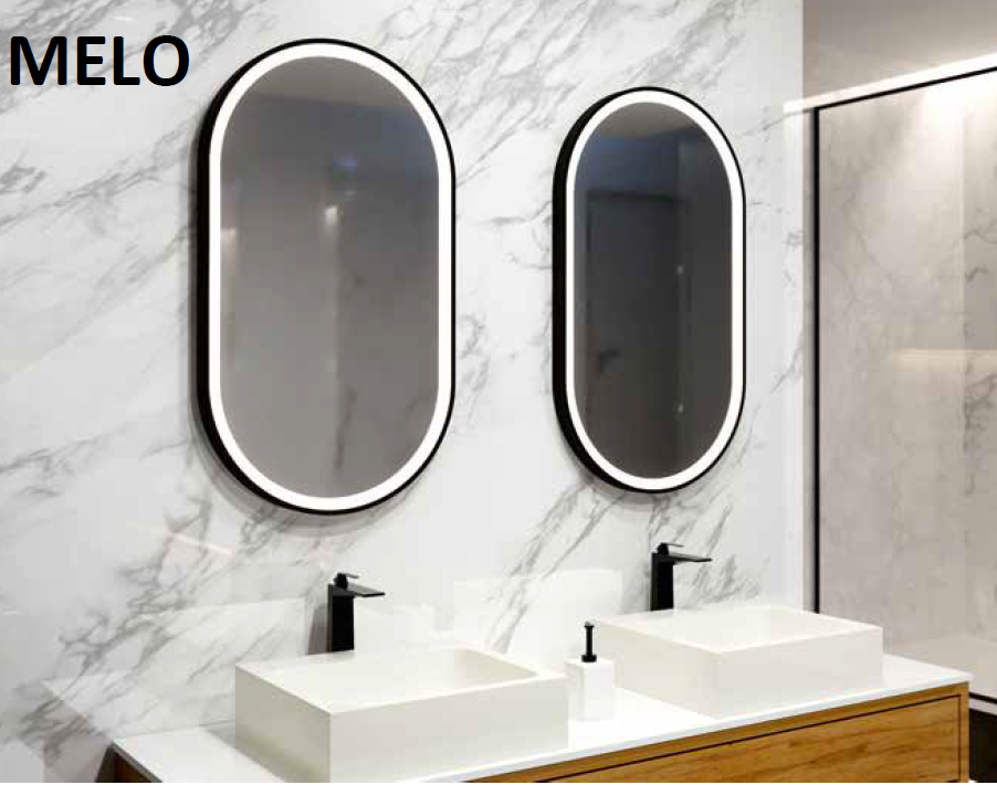 Bemeta Melo zrcadlo s rámem s LED osvětlením černá 50x90 cm