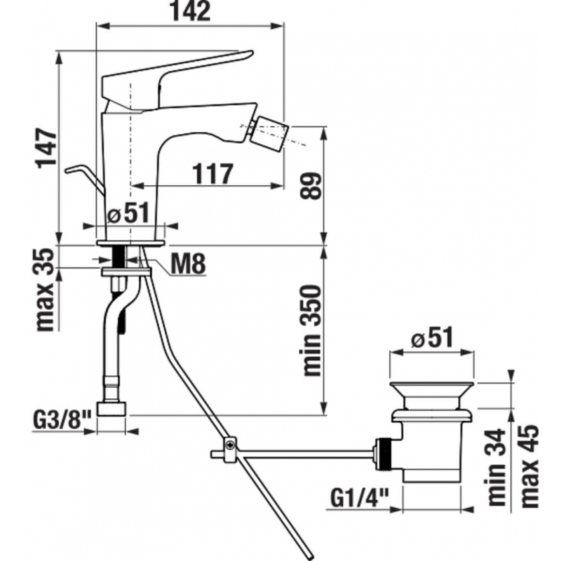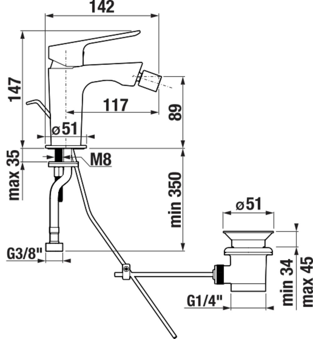 Laufen Uma-E bidetová stojánková páková baterie s automatickou výpustí chrom