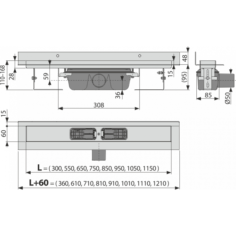 • Pro odvodnění sprch v úrovni podlahy