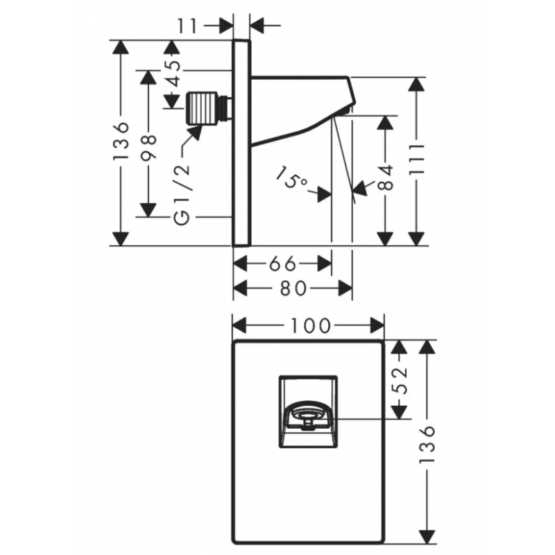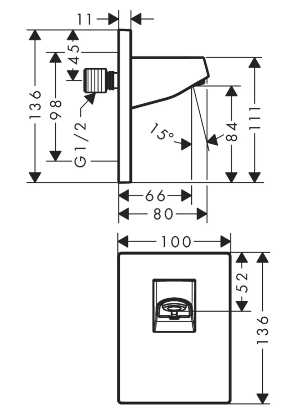• Nástěnné připojení horní sprchy Pulsify 105